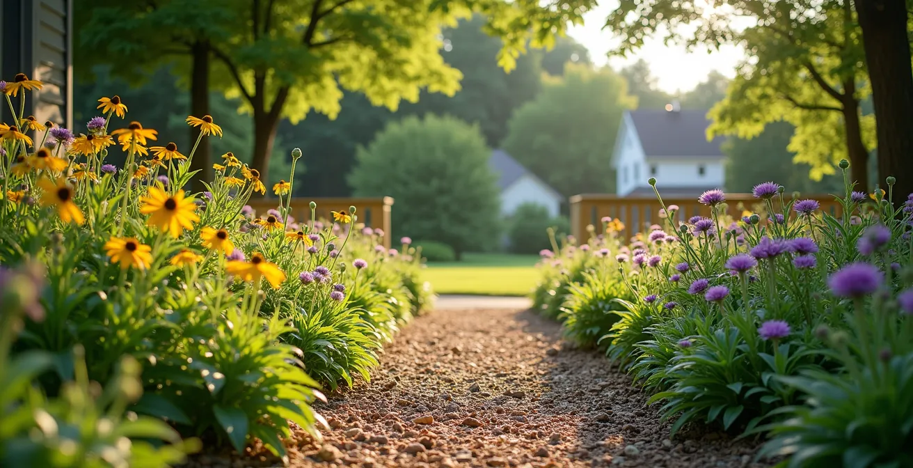 - Pensez en couches : paillis (gestion de l’eau et des herbes), vivaces (structure permanente), et espacement (santé à long terme).