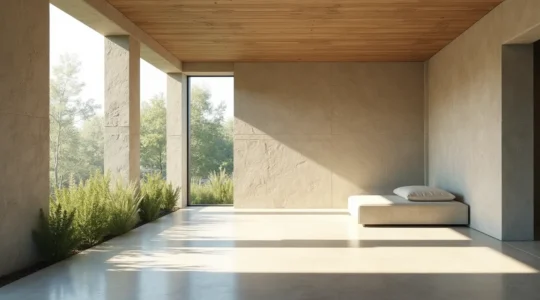 Les matériaux à haute masse thermique – béton, brique, pierre, terre crue – absorbent lentement la chaleur et la libèrent tout aussi lentement. Ce phénomène crée ce qu’on appelle le déphasage thermique : un décalage entre le moment où la température extérieure atteint son pic et celui où cette variation se fait sentir à l’intérieur. En été, cela peut maintenir la fraîcheur pendant les heures les plus chaudes ; en hiver, cela aide à stabiliser la température intérieure.
